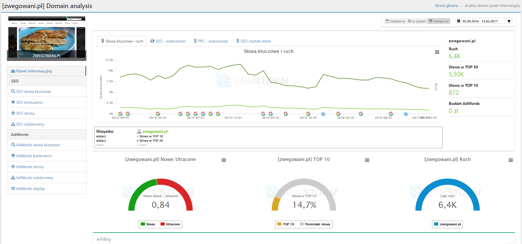 Инструменты для анализа видимости доменов в Google могут быть полезны при выборе проверенных фраз. Система SEMSTORM, которая позволяет просматривать отчеты, касающиеся не только обычных результатов, но и рекламы AdWords, будет хорошо работать в этой области. Вы можете прочитать больше об отчетах AdWords в SEMSTORM. здесь ,